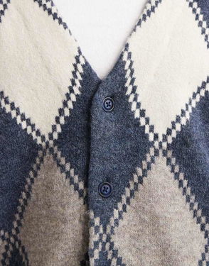 Valencia Argyle Knit Cardigan In Indigo Blue