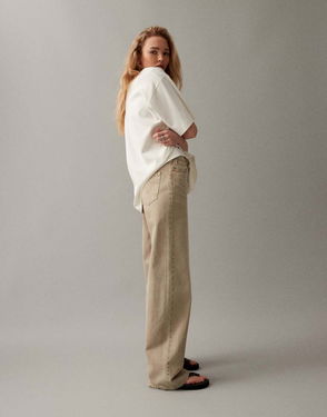 Ribcage Wide Leg Jeans In Stone