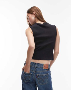 Rory Sleeveless Button Up Top In Black