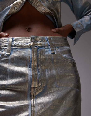 Maxi Column Metallic Denim Skirt In Gold