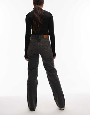 Ribcage Straight Full Length Jeans In Washed Black