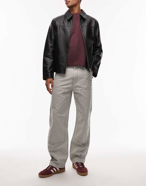 Workwear Capsule 568 Loose Straight Double Knee Jeans In Light Grey