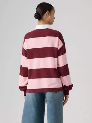 Reenie Long Sleeve Polo Shirt In Pink Stripe