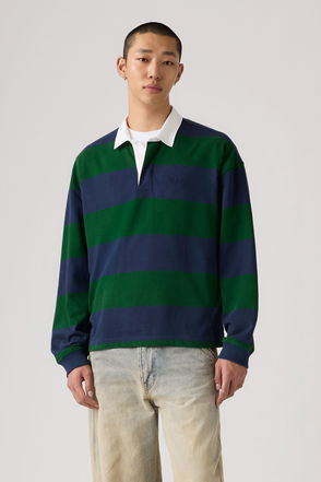 Union Tonal Logo Stripe Rugby Polo In Navy