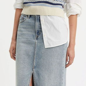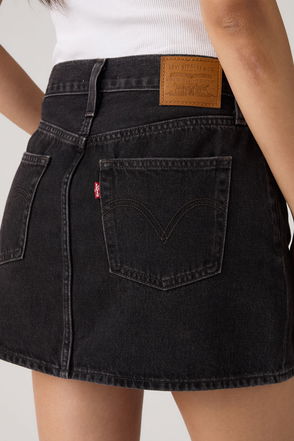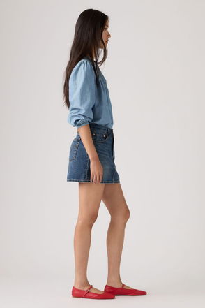 Retro Button Front Denim Mini Skirt In Dark Blue
