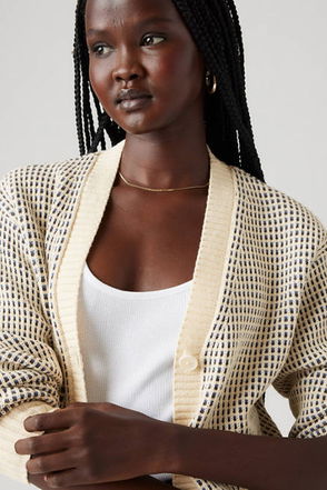 Valencia Cotton Blend Geometric V Neck Cardigan