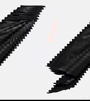 Asymmetric Draped Leather Midi Skirt