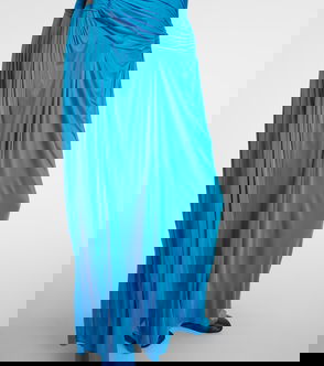 Draped-Neckline Long-Sleeve Cotton-Silk Blend Blouse