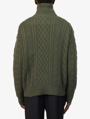 Cable-Knit Zip-Up Wool Sweater