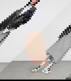 Wrap-Over Knee-Length Cotton-Silk Blend Skirt