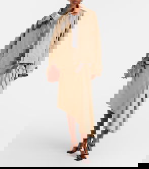 Leather-trimmed Draped Cotton And Silk Midi Skirt