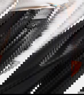 Brand-Anagram Cropped Wide-Leg Leather Trousers