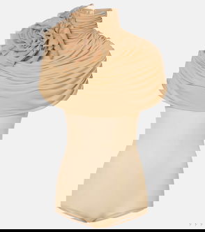 Floral-appliqué Caped Jersey Bodysuit