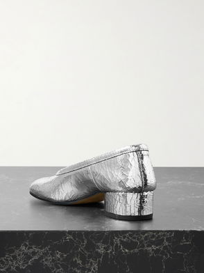Tabi Ballerina Split-toe Metallic Cracked-leather Pumps