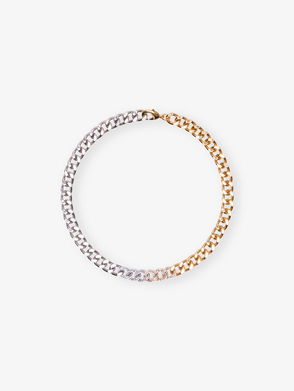 Rhinestone-Embellished Brass Chain Necklace