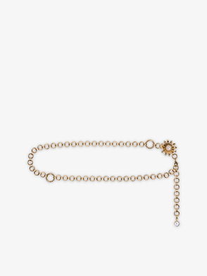 Flower-Embellished Metal Chain Belt