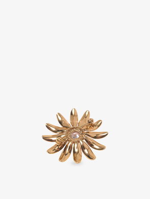 Flower Rhinestone-Embellished Brass Brooch
