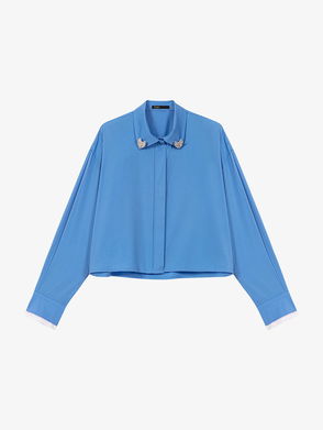 Rhinestone-Embellished Removable-Collar Cotton Shirt
