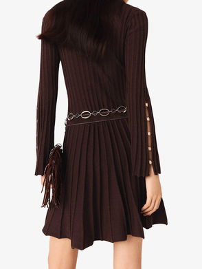 Buttoned V-Neck Long-Sleeve Stretch-Knit Midi Dress