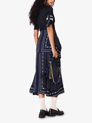 Flared Sequin-Embroidered Denim Midi Skirt