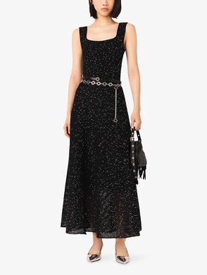 Square-Neck Rhinestone-Embellished Knitted Maxi Dress