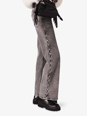 Beaded Wide-Leg Stretch-Denim Jeans