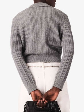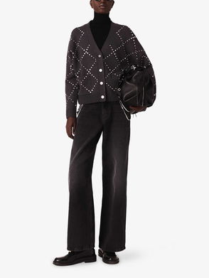 Rhinestone-Collar Slim-Fit Wool Cardigan