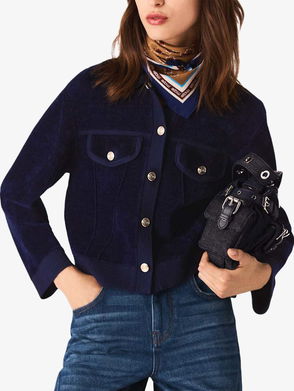 Removable-Collar Patch-Pocket Short Tweed Jacket