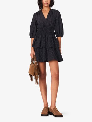 Rhinestone-Embellished Ruffled Woven Mini Dress