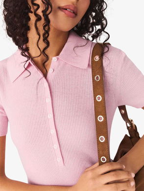 Ribbed Wool And Silk Polo Jumper