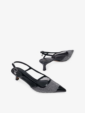 Rhinestone-Embellished Heeled Leather Mary-Jane Pumps