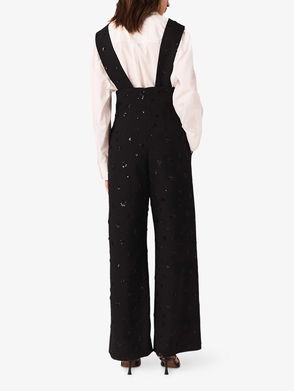 Sequin-Embellished Detachable-Braces Stretch-Woven Trousers