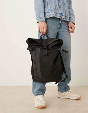 Multi Compartment Roll Top Bag With Front Zip On Black