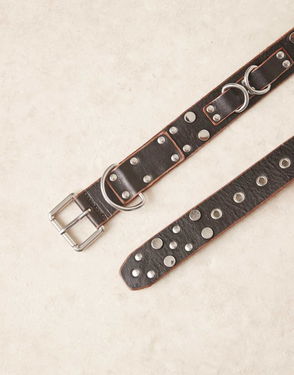 Ada Studded Leather Belt, Dark Brown