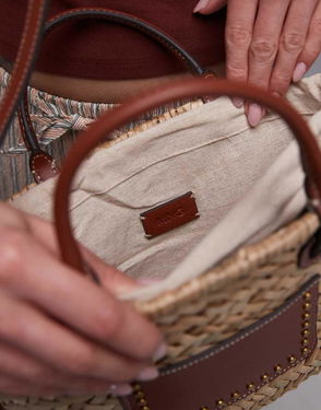 Faux Leather Slouchy Bag With Gold Statement Handle In Cream