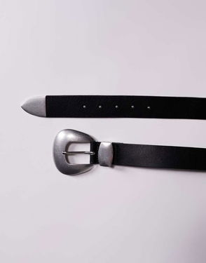 Featuring Kaia Gerber 100% Leather Belt With Oversized Silver Buckle In Black
