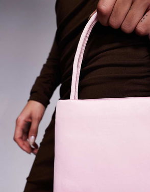 Featuring Kaia Gerber Metalic Textured Satin Bag In Baby Pink