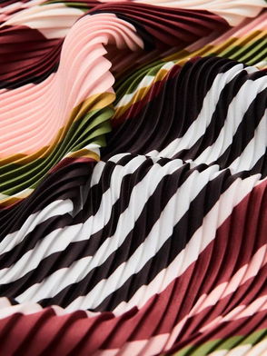 Stripe Pleated Scarf, Garnet