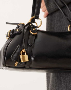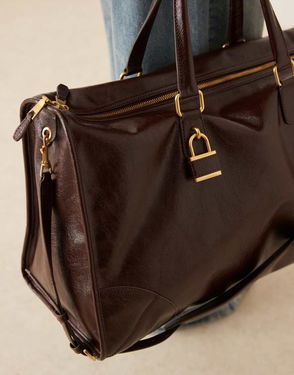 Leather Lock Charm Cross Body City Bag In Dark Brown