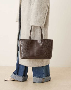 Faux Leather Rectangle Shoulder Bag In Dark Brown