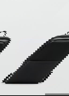 Multi Compartment Roll Top Bag With Front Zip On Black