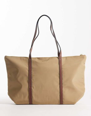 Classic Tote Bag With Contrast Straps In Tan