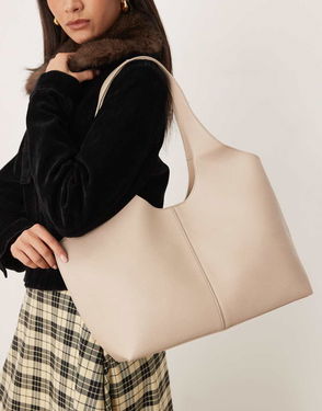 Faux Leather Shopper Bag In Oat