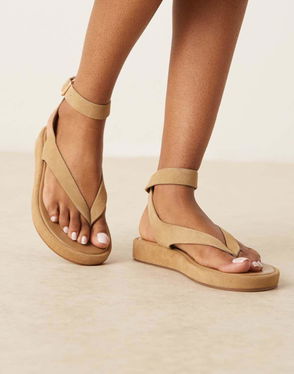 Suede Ankle Strap Sandals In Tan