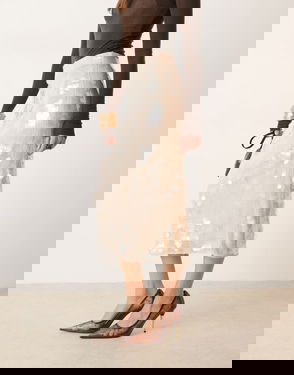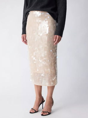 Sequin Midi Skirt In Beige