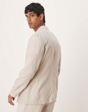 Linen Mix Slim Fit Blazer Co-ord In Light Beige