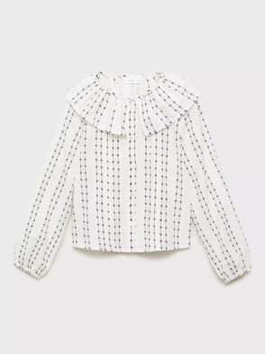Kids' Roma Cotton Babydoll Collar Floral Blouse, Light Beige