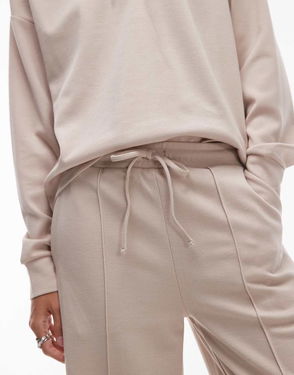 Light Weight Knitted Trouser Co-ord In Light Beige