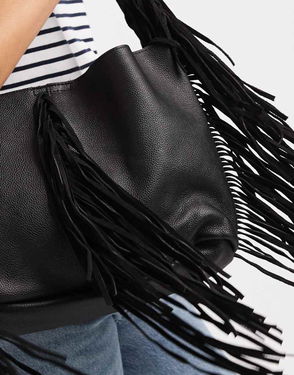 Teen 100% Leather Tassle Detail Shoulder Bag In Black