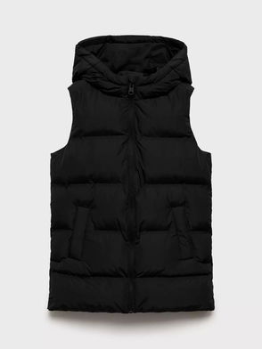 Kids' Lina Quilted Hooded Waterproof Gilet, Black